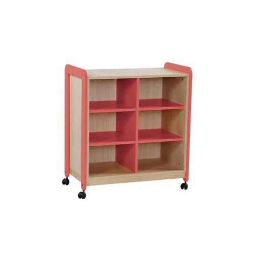 Meuble de rangement à colonne avec cases. Meuble sur roulettes, permettant de pouvoir le déplacer dans les espaces facilement. Livré prémonté.