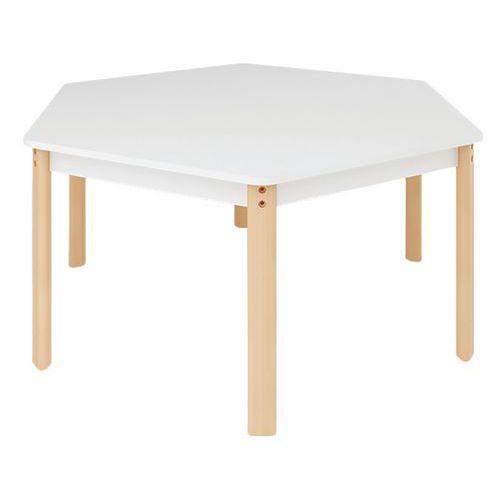 Illustration de : Table Ergo hexagonale T0 - piètement bois hêtre