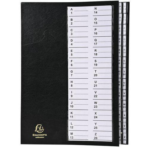 Trieur à onglets cavaliers 26 compartiments Alphanumériques - A4. Trieur grande capacité grâce au dos extensible à soufflet. Idéal pour classer et organiser des documents perforés ou non perforés par nom, rubrique, jour…grâce aux onglets alphanumériques. La couverture en carton rigide assure une excellente longévité au produit. Les cavaliers plastique à effet loupe permettent une meilleure visibilité Etiquette et porte-étiquettes sur la couverture pour identifier les contenus.