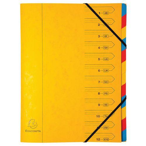 Trieur agrafé avec élastiques 12 compartiments Avec des couleurs gaies, ce trieur dos extensible convient idéalement aux étudiants pour son confort d'utilisation, l'ouverture à plat, la résistance en toute circonstance.